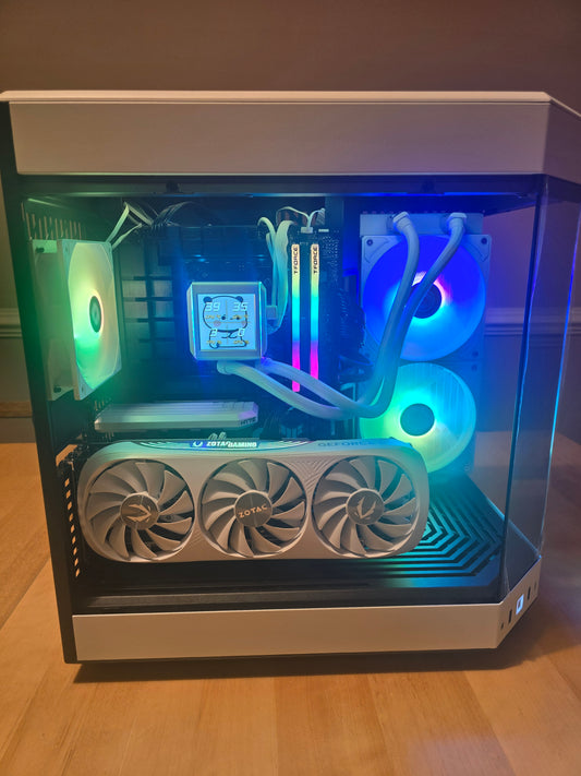 With a 4090 in mostly white, in a beautiful Fractal Design case. It's been running really well.